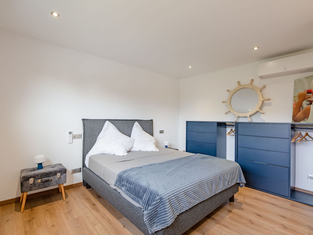 À l'étage supérieur: 1 chambre avec 1 grand-lit (160 cm, longueur 200 cm), air-conditionné.