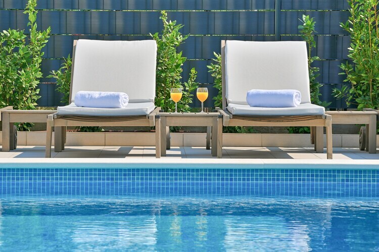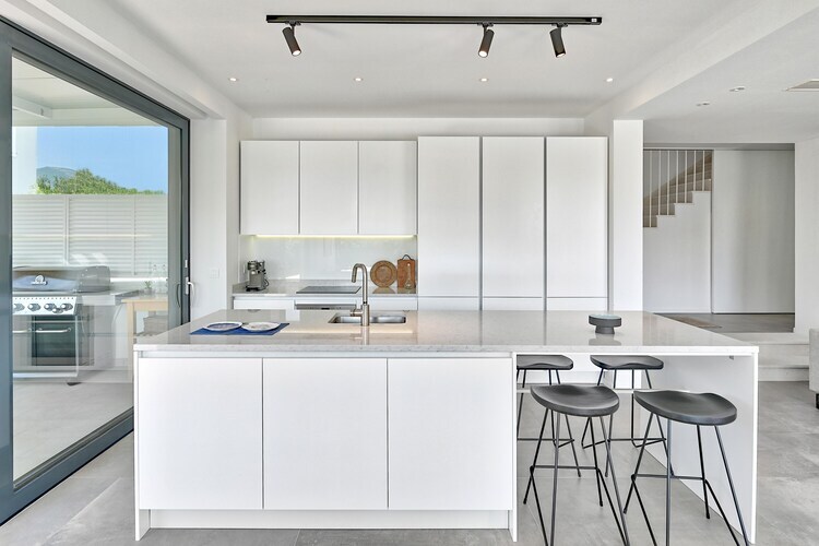 La villa dispose d'un spacieux séjour, d'une cuisine entièrement équipée et d'un coin repas au rez-de-chaussée, avec de grandes baies vitrées ouvrant sur une terrasse privée et une piscine de 45 m². Profitez du soleil sur les transats, des grillades au barbecue ou détendez-vous dans le jardin verdoyant. La climatisation, la télévision par satellite et le Wi-Fi assurent un confort optimal.