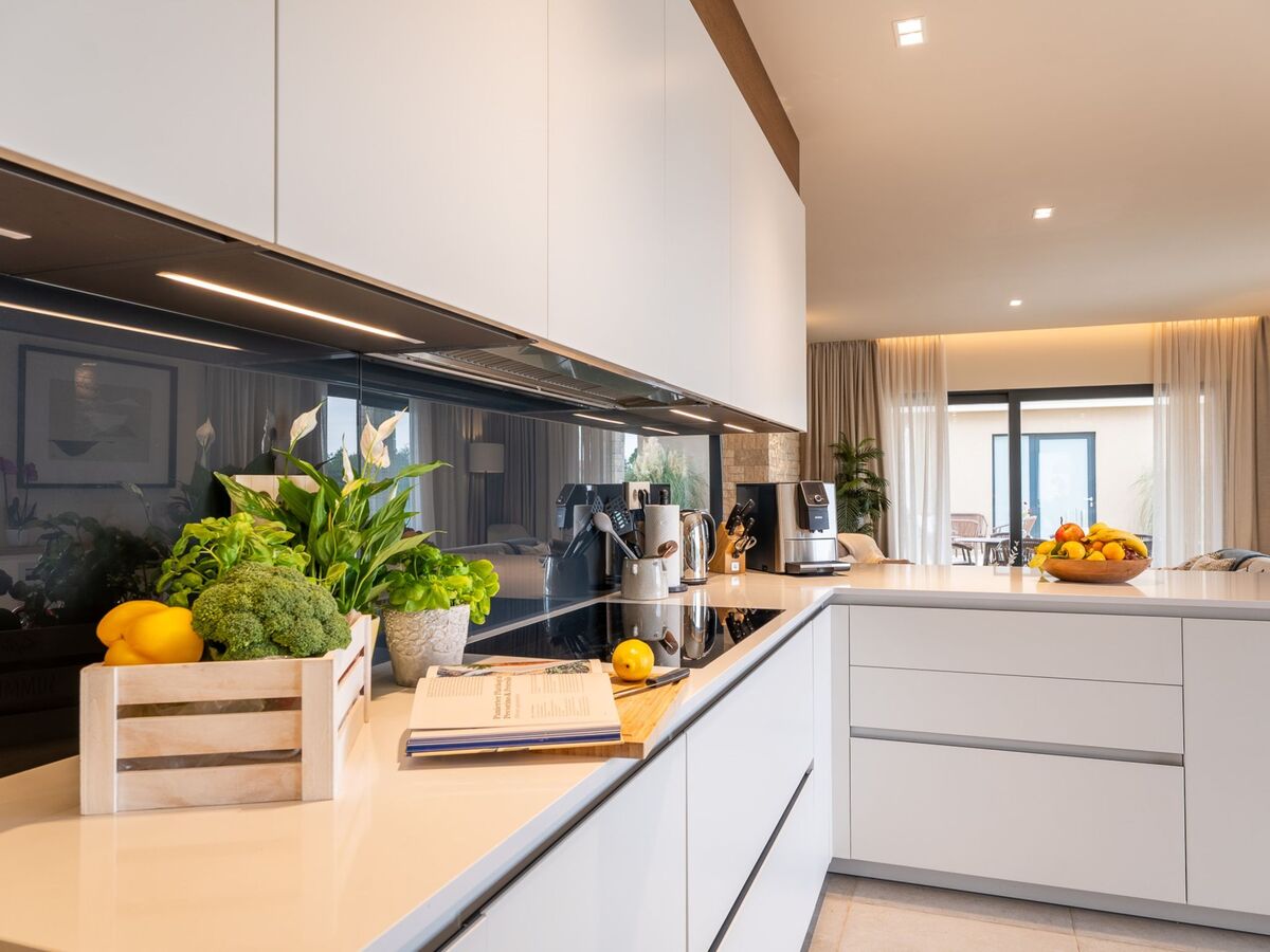 Cuisine ouverte (four, lave-vaisselle, 4 plaques vitrocéramiques, grille-pain, bouilloire électrique, micro-ondes, congélateur, cafetière électrique).
