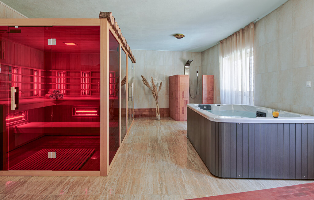 Bien-être à l'extérieur : Location de vacances disposant de chaises-longues et d'un ou plusieurs équipements tels que piscine extérieure, jacuzzi extérieur, lit à baldaquin de jardin etc...