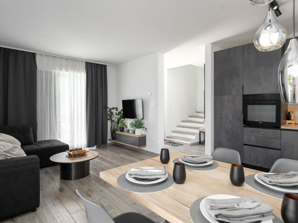 Aménagement plaisant: séjour/salle à manger avec TV (satellite) et air-conditionné.