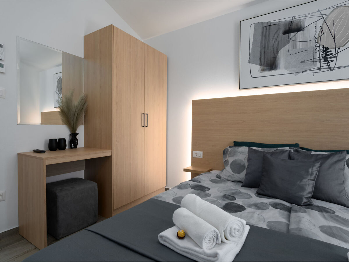 1 chambre avec 1 grand-lit (130 cm, longueur 200 cm), TV (satellite) et air-conditionné.