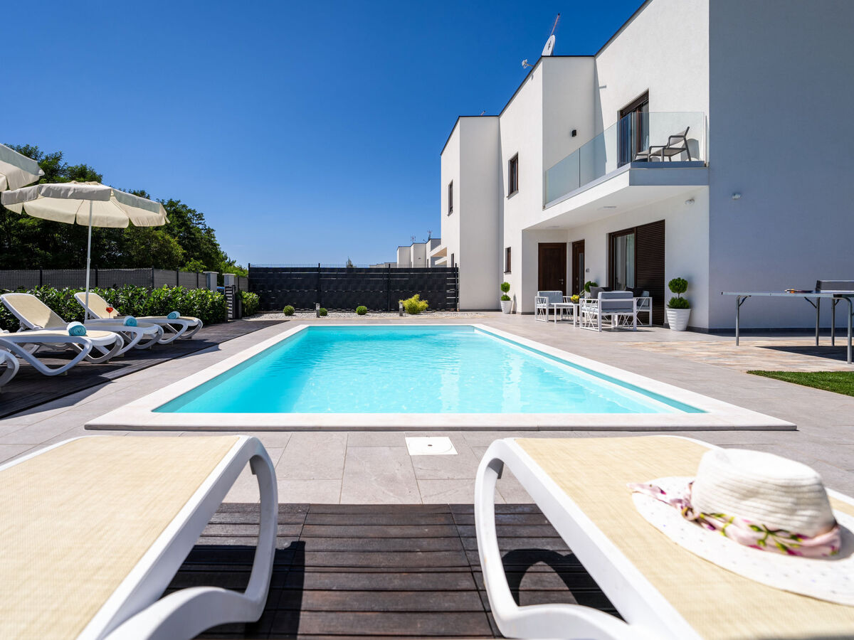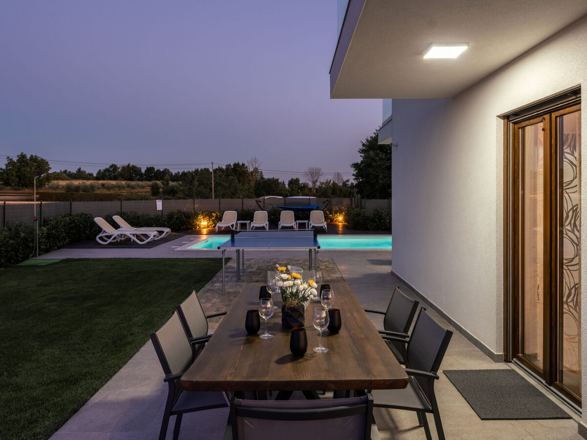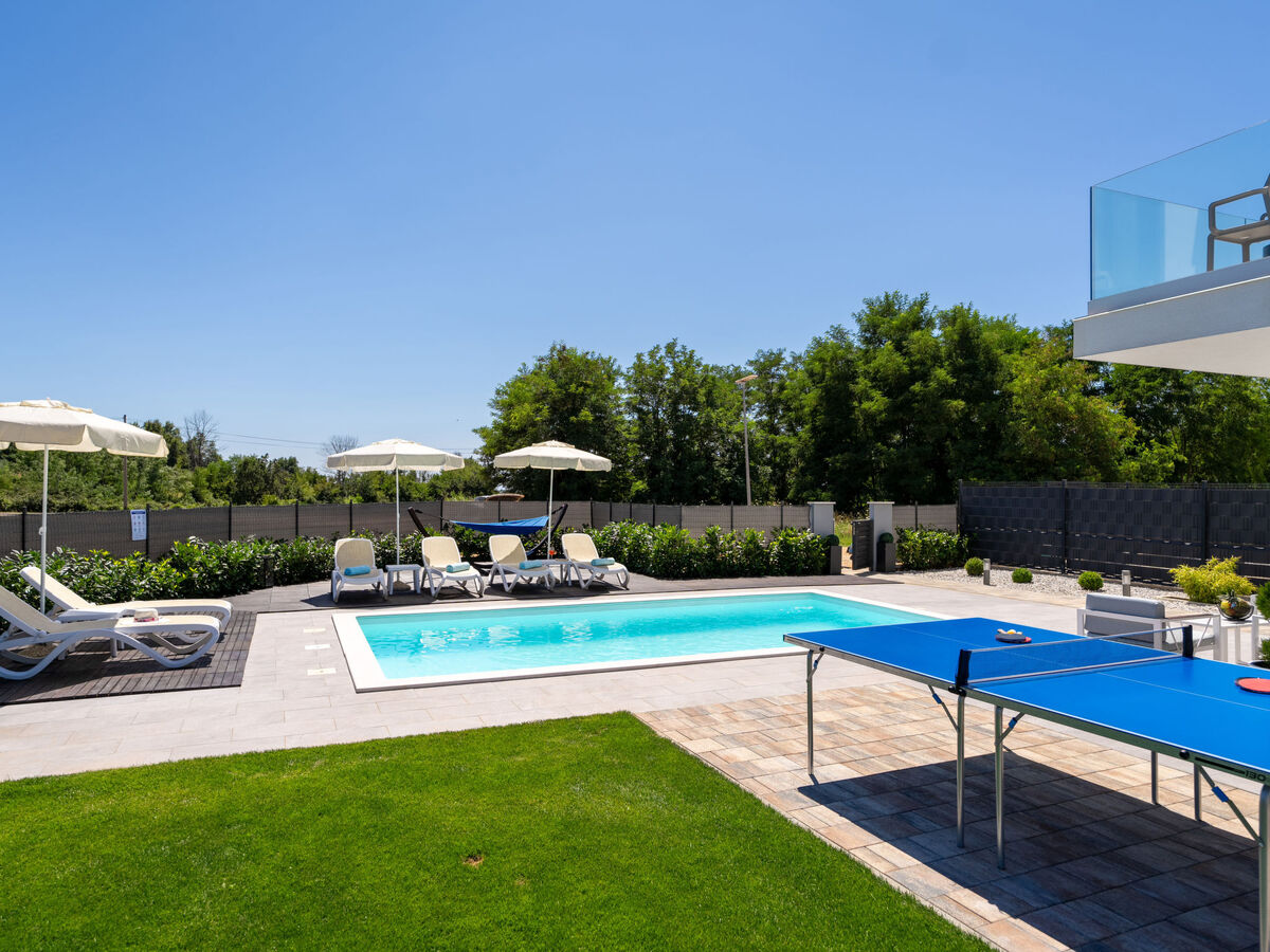 A usage privé: terrain 275 m2 (clôturé), piscine rectangulaire (7 x 4 m, profondeur 145 cm, disponibilité saisonnière: 01.Mar.