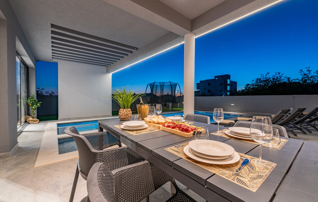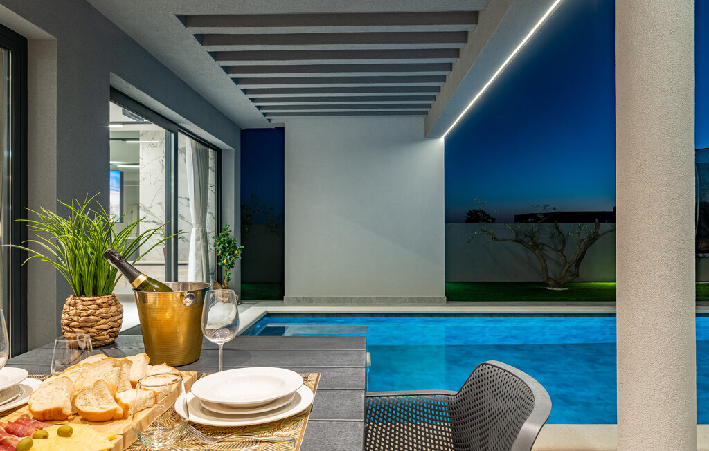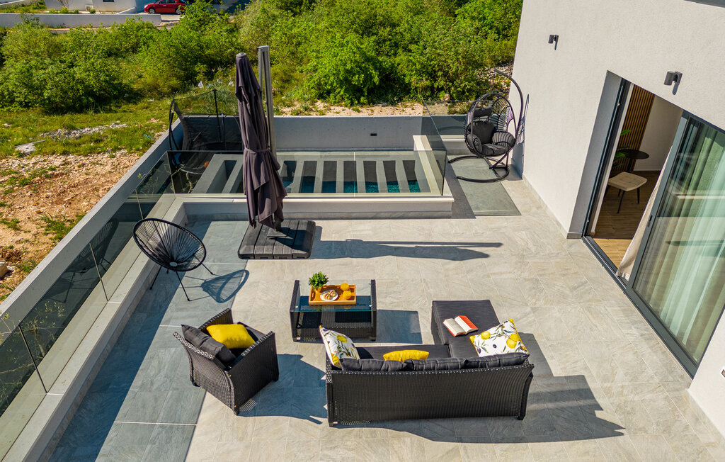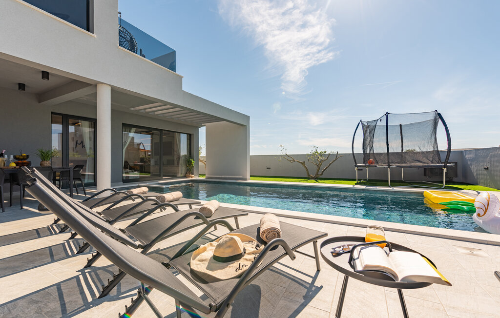 Bien-être à l'extérieur : Location de vacances disposant de chaises-longues et d'un ou plusieurs équipements tels que piscine extérieure, jacuzzi extérieur, lit à baldaquin de jardin etc...