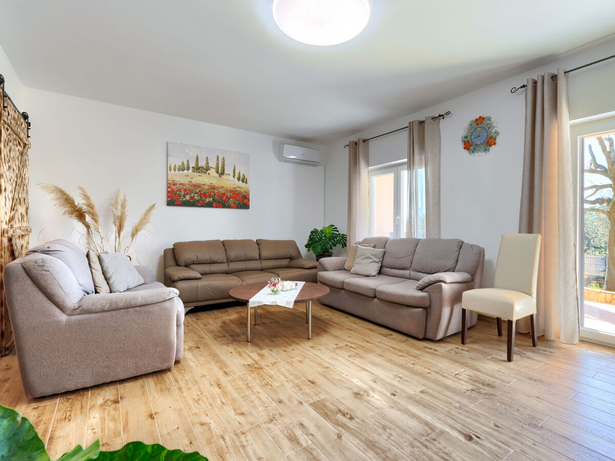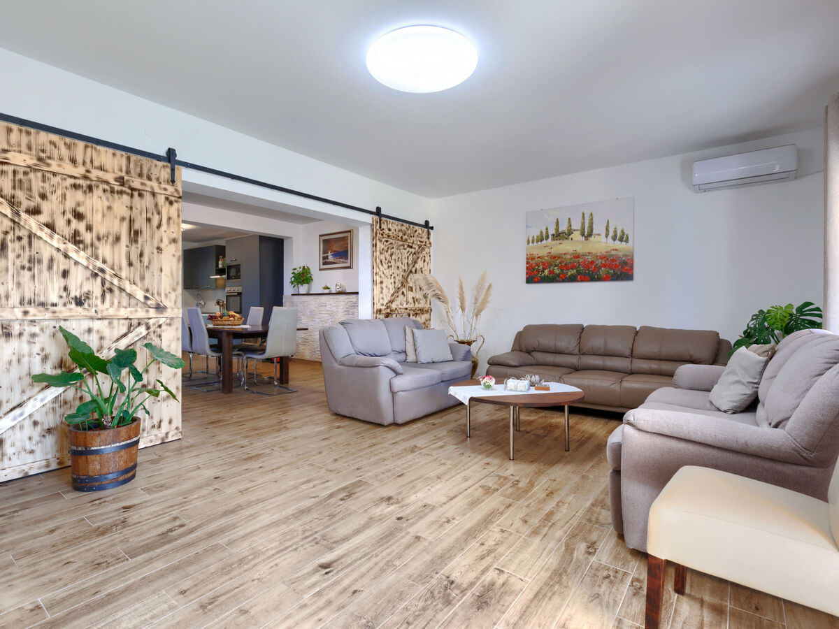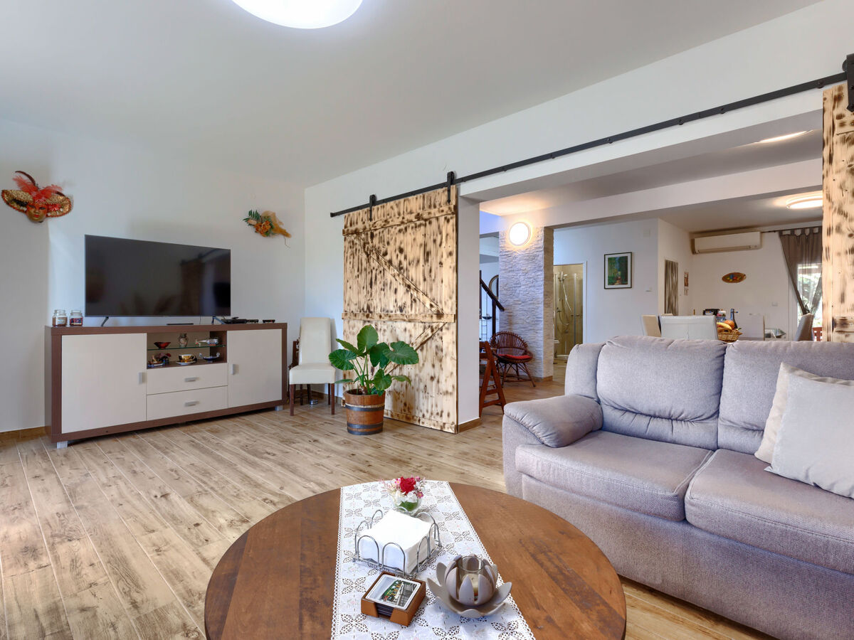 Séjour avec TV (satellite) (écran plat), air-conditionné.