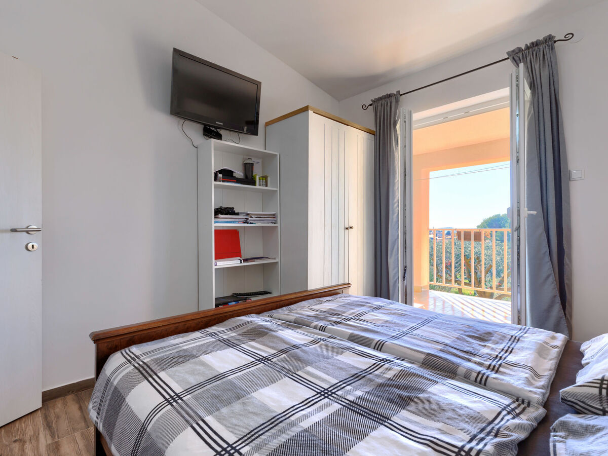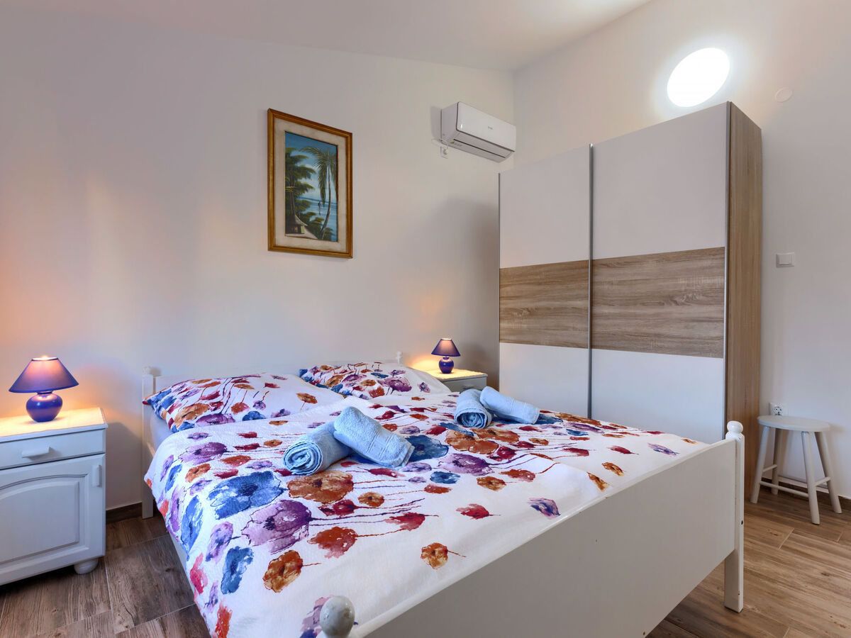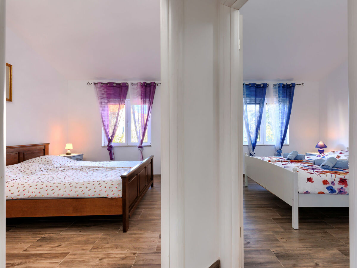 À l'étage supérieur: 4 chambres, chaque chambre avec: 1 lit double (160 cm, longueur 200 cm), TV (satellite) (écran plat), air-conditionné.